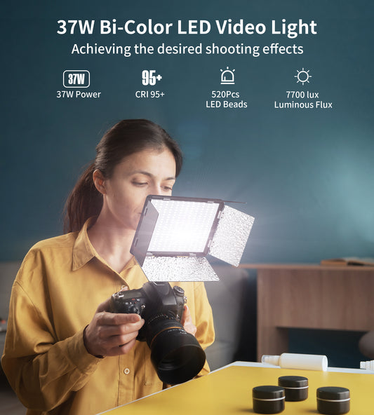 37W Video Light,520 LED Camera Light with Adjustable Sunshade,CRI>95 3200-5600K Portable Photography Lighting Suitable for Outdoor Photography Live Streaming Vlog