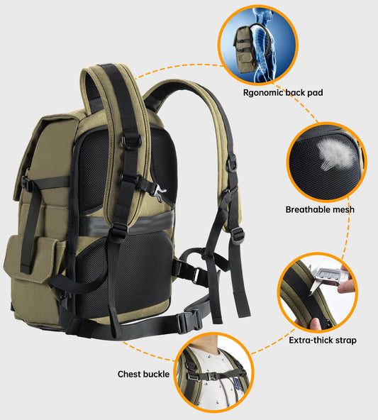 Camera Backpack Professional Camera Bag Waterproof Canvas Photography Backpack with Front Hard Shell&Laptop Compartment&Tripod Holder&Rain Cover Compatible with Canon/Nikon/Sony