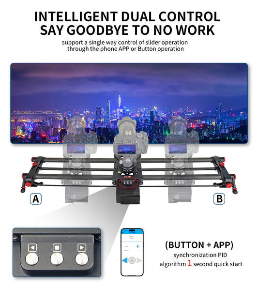 Camera Slider Motorized, Button/APP Dual Control, utomatic Round Trip, Time Lapse, Panoramic Shooting, Video Capture, Slider Smooth and Stable, 120°Panoramic Shooting, Carbon Fiber Tube