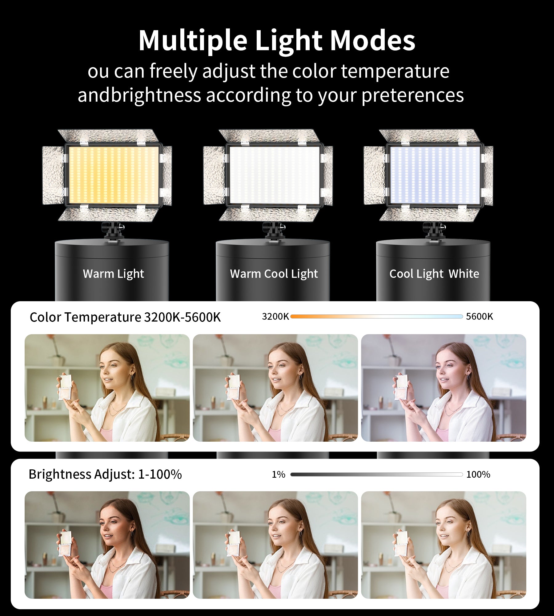 - 【520 High-Quality LED Beads】The camera light equipped with 520 high-quality LED beads, our camera light delivers bright, consistent, and energy-efficient illumination. These long-lasting LEDs ensure your photos and videos always look vibrant and professional.