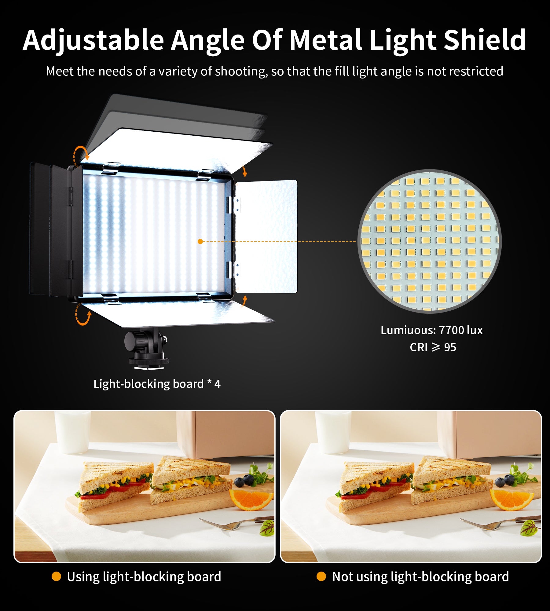 37W Video Light,520 LED Camera Light with Adjustable Sunshade,CRI>95 3200-5600K Portable Photography Lighting Suitable for Outdoor Photography Live Streaming Vlog