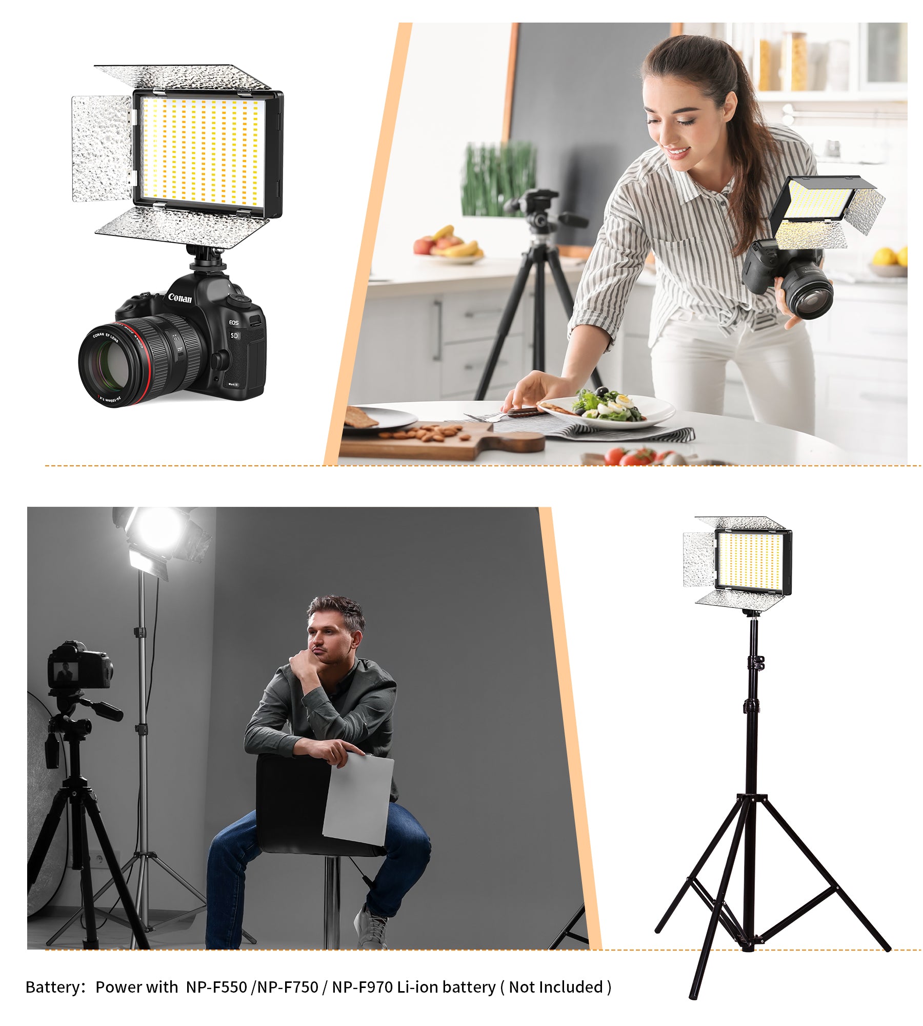 - 【Powered by NP-F Series Batteries】The camera photography lighting is compatible with SONY NP-F series batteries, providing you with a reliable and convenient power source. Perfect for on-the-go shoots, this battery option ensures you never miss a moment, even when an outlet is not availabl(Batteries Sold Separately)