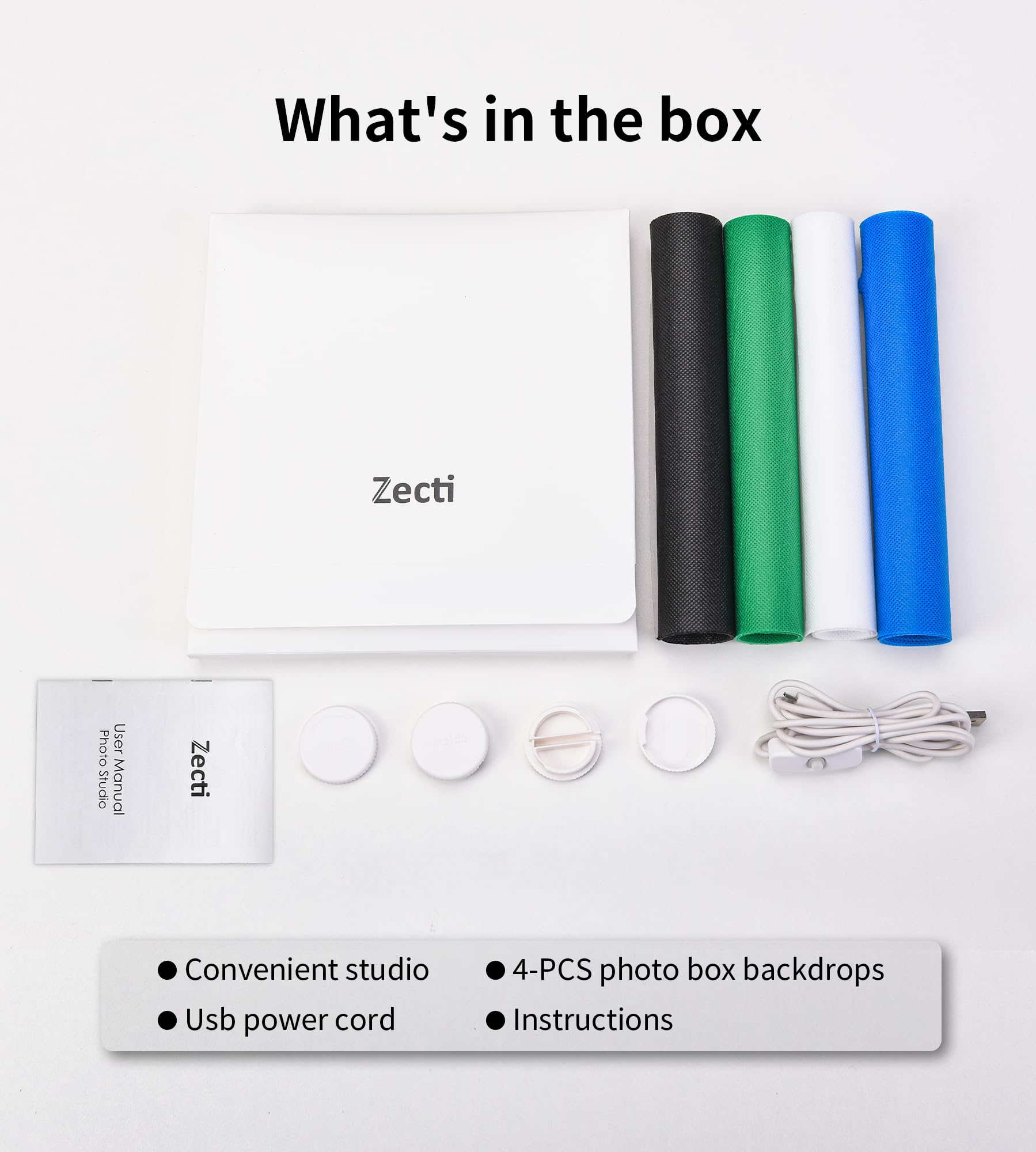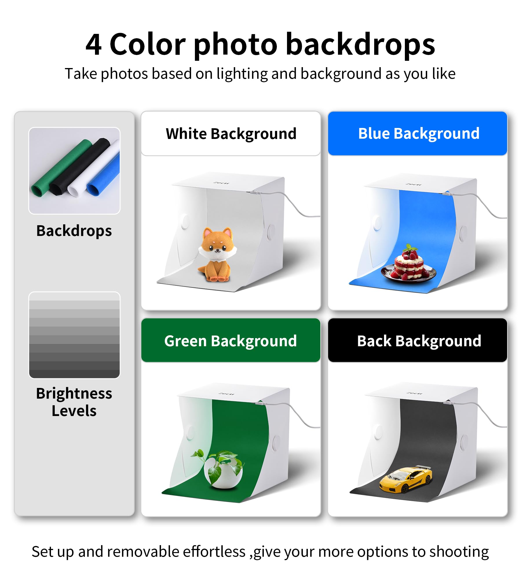 - 【Multi-color Backgrounds】This photo light box with 4pcs colors(black,white,blue and green) removable non-woven fabrics backdrops and there is no worry for being affected because of scratches on material.