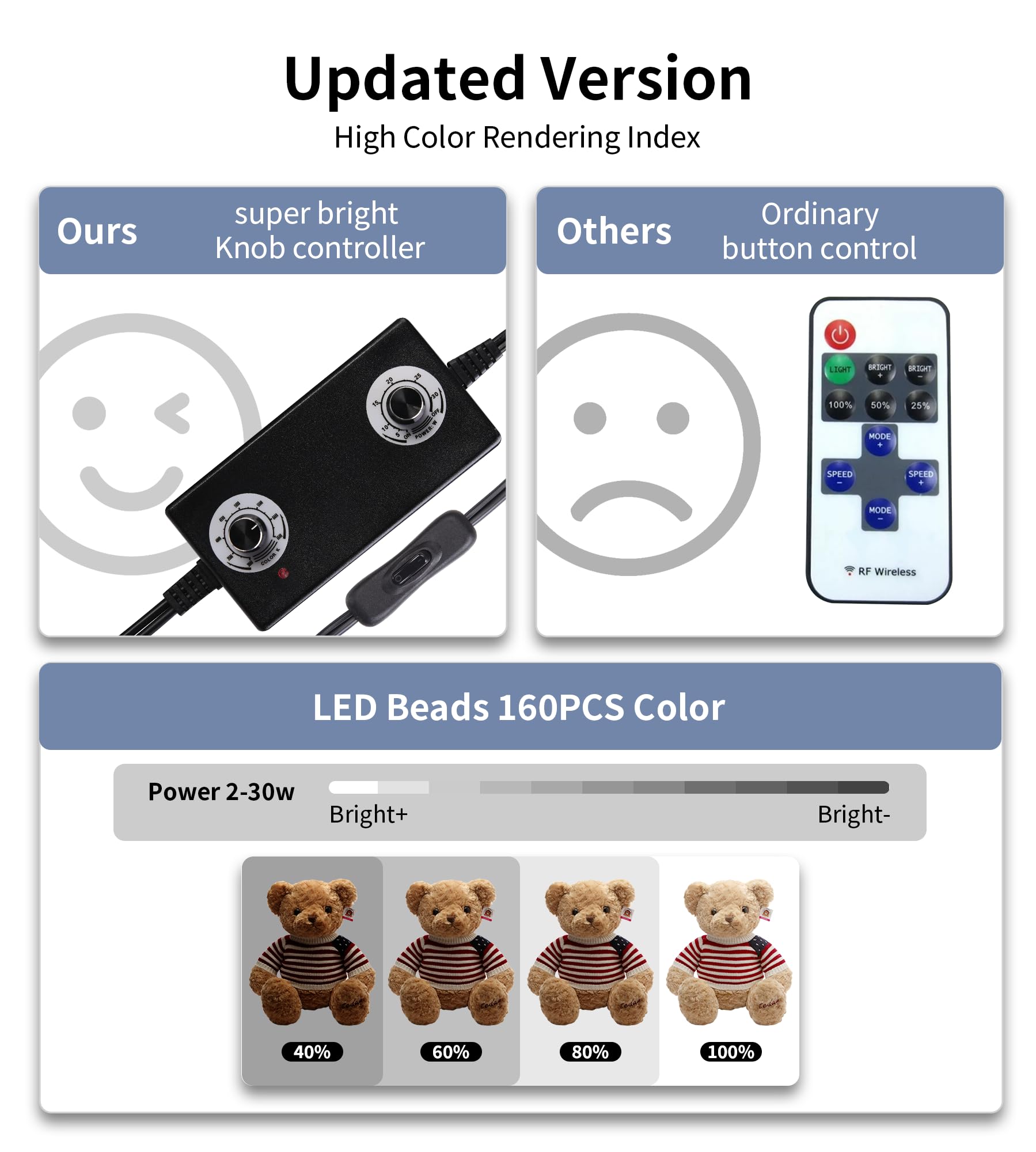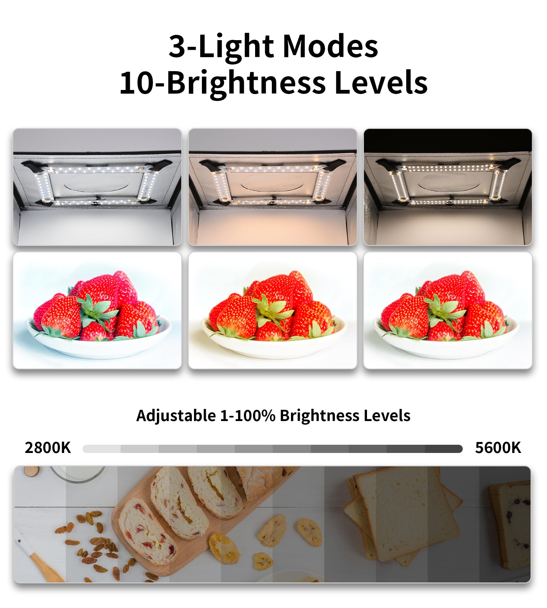 - 【High Brightness】Photo light box integrates 160 high-quality LED light beads,provides enough brightness for shooting. 10 brightness levels allow you to dim from a range 0%-100%, ideal photo box for product photography. CRI ≥95 color temperature light board, create brighter.