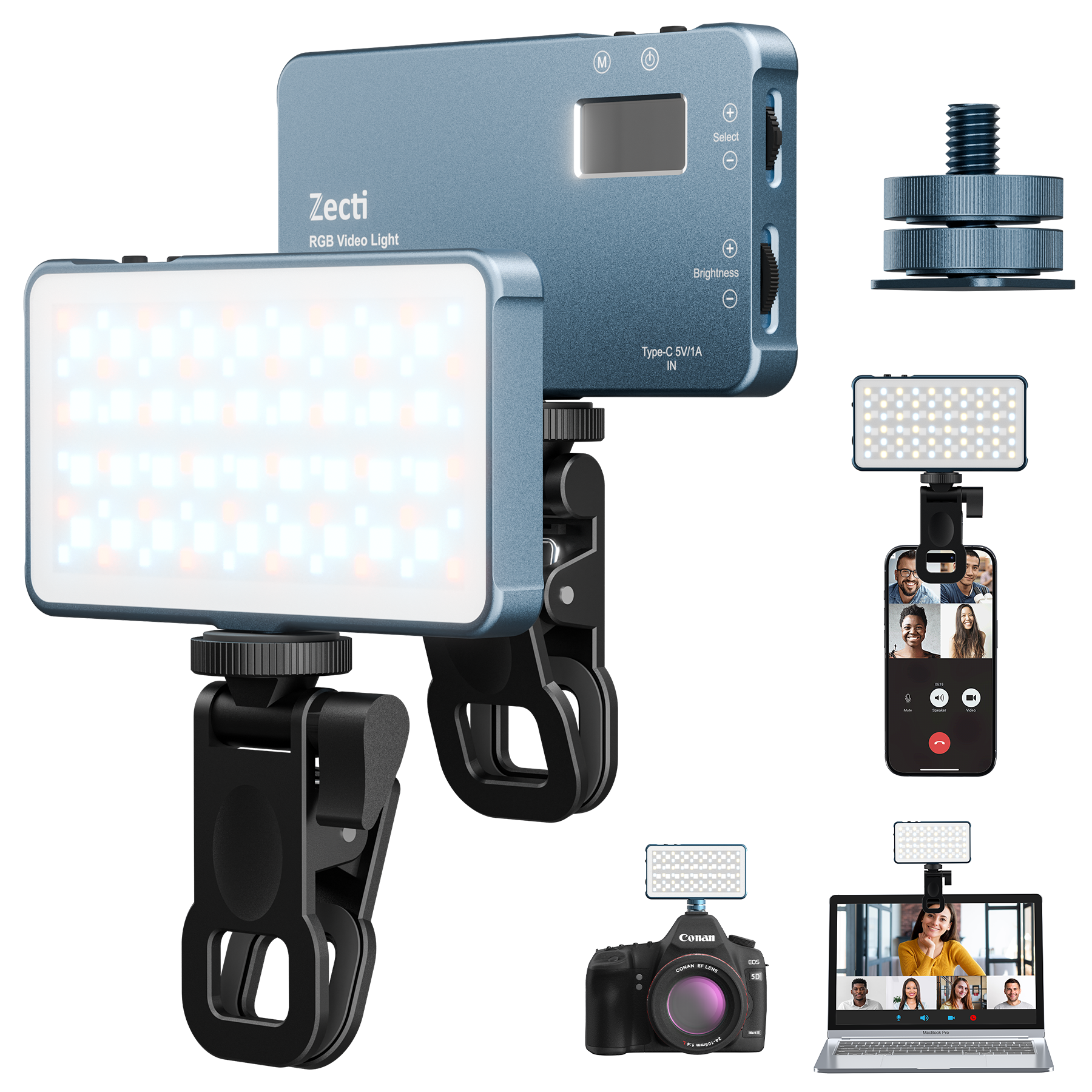Selfie Light, Phone Light with Metal Hotshoe & Clip, 1500mAh Rechargeable 360° Full Color 21 Scenes RGB Video Light for Phones, iPhone, Laptops, Cameras, Selfie, Video Conference, TikTok