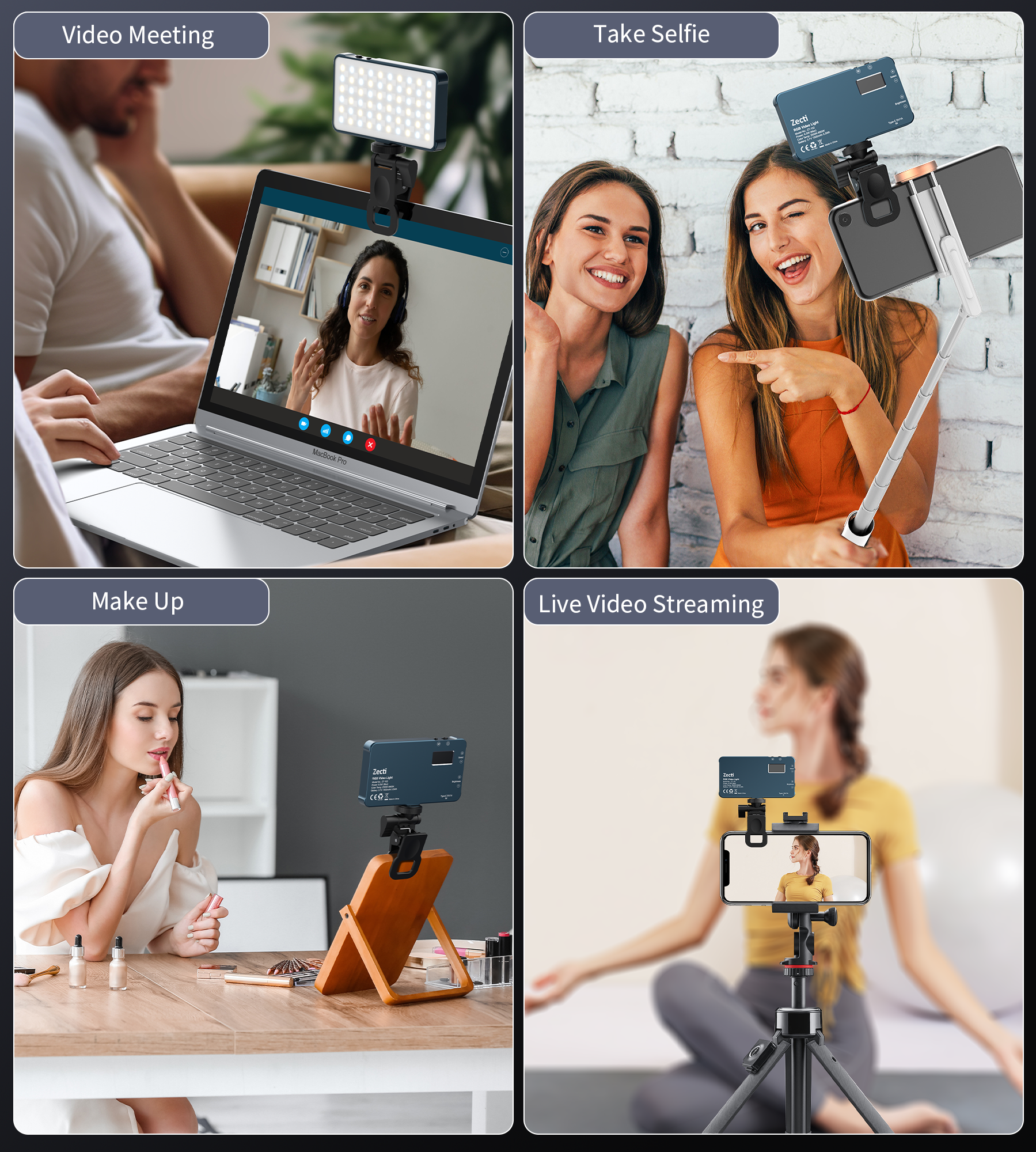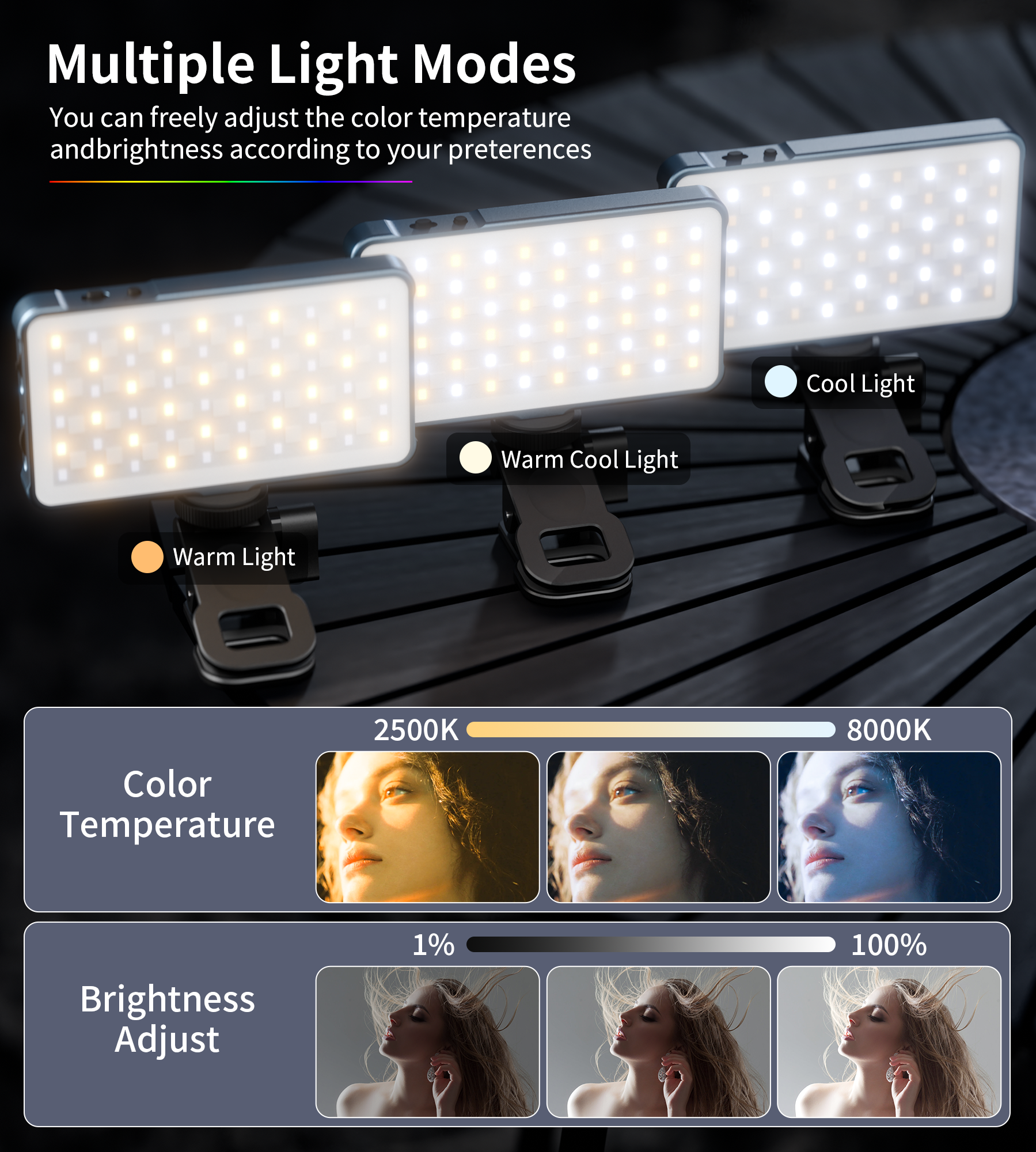- 【Color Temperature & Brightness Adjustable】The phone light can be easily adjusted between 1%-100% brightness, color temperature can be easily adjusted between 2500K (warm)-9900K (white),1500lux lumiuous ensuring that you always look your best in every selfie. Suitable for selfie, live broadcast, make-up, video conference