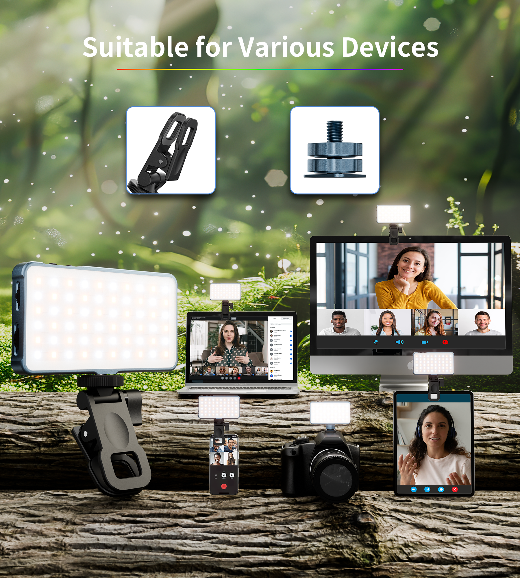 - 【Wide Compatibility and Multiple Usage Scenarios】RGB selfie light compatible with 99% smartphones, laptops, IPad’s, etc. Comes with a metal hot shoe that attaches to your camera, perfect for TikTok, YouTube, Instagram and more. iPhone's selfie light, you can use it selfie, live broadcast, photography or makeup, to solve the problem of low light and give you a better experience